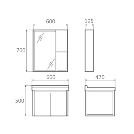 - Mirror Cabinet:600×125×700mm