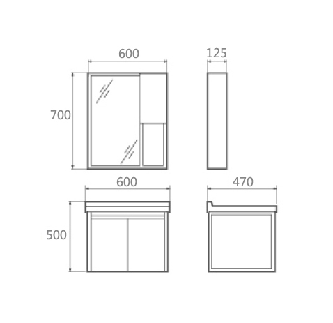 - Mirror Cabinet:600×125×700mm