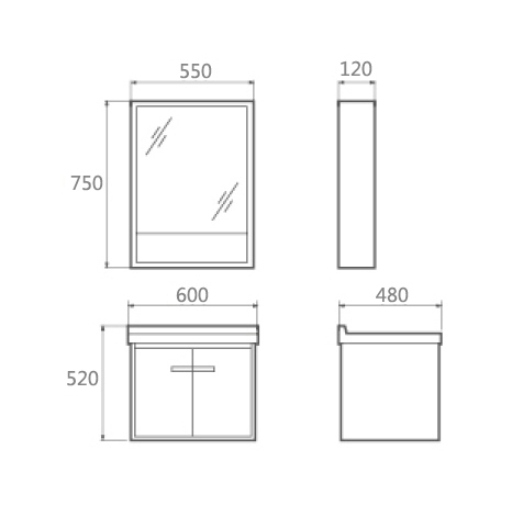 - Mirror Cabinet:550×120×750mm